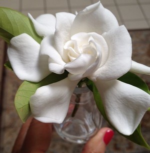 This past spring when our lone gardenia bush was in glorious full bloom I was so enjoyed seeing it each day. Mornings I would cut a couple to bring indoors, and the lovely fragrance would fill the room.