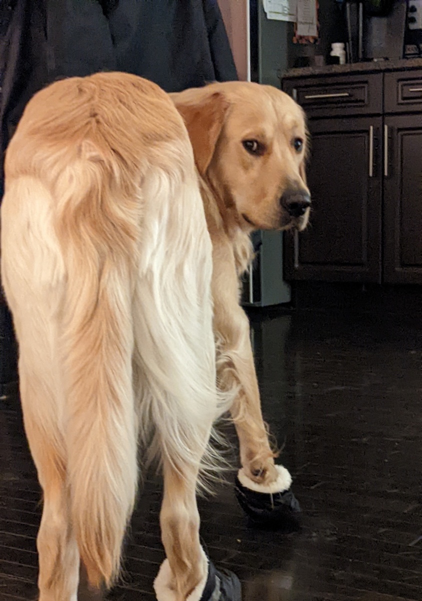 Charlie (Presenting a paw, ears cocked forward, talk swishing from side to side): “Hi mom!”