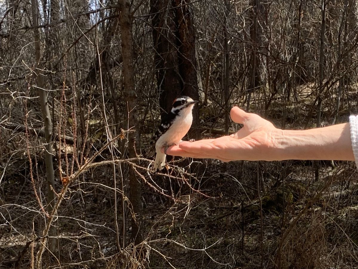 We probably spent an hour at least on that trail, and before we finished, my hand had been honored by the feathery steps of black-capped and boreal chickadees, red-breasted nuthatches, and a Downy Woodpecker! A white-breasted nuthatch even came close to landing. Wow!